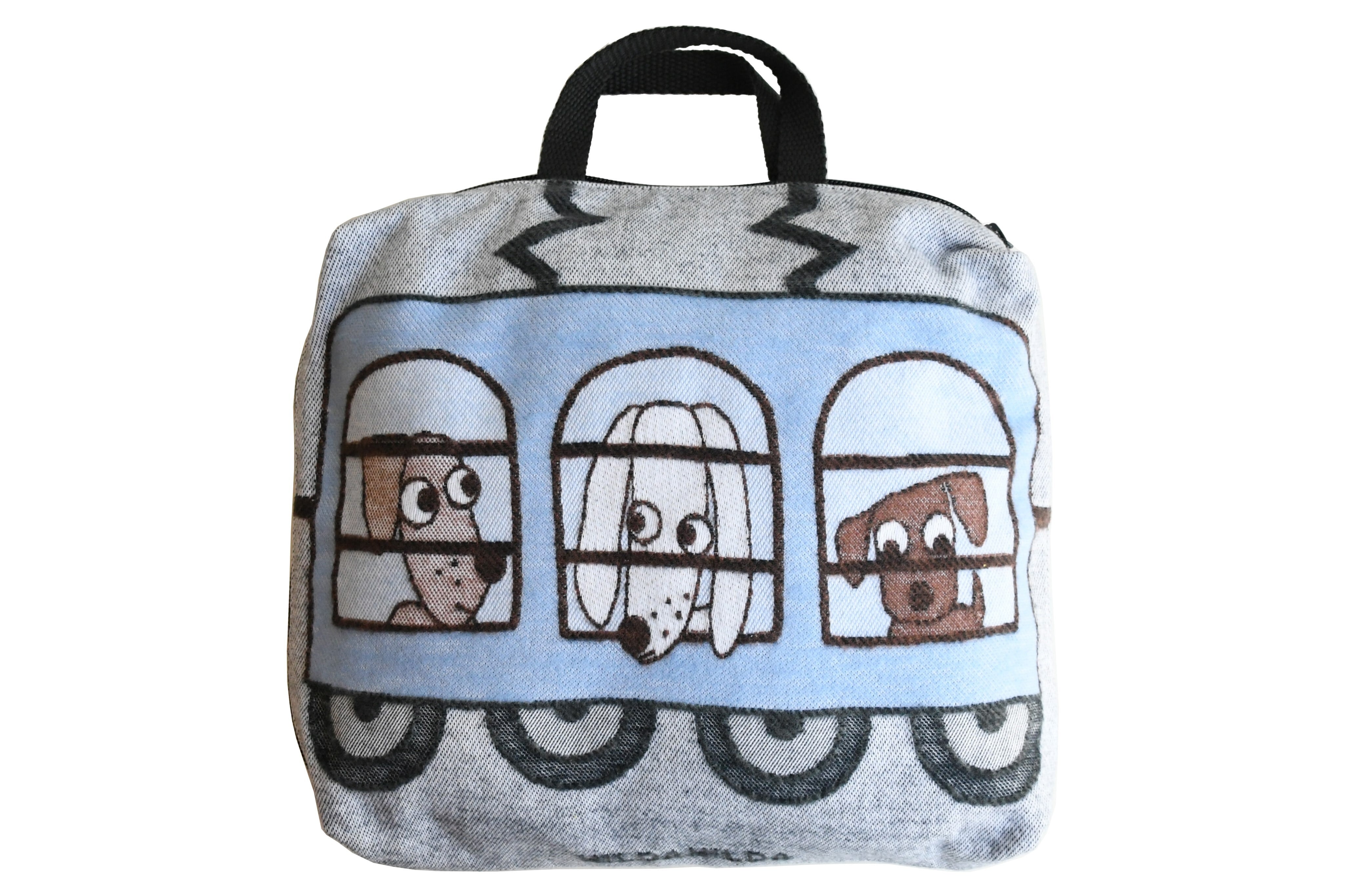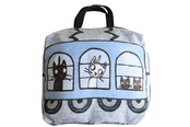 トレインクッションバッグ / いぬ・ねこ 青